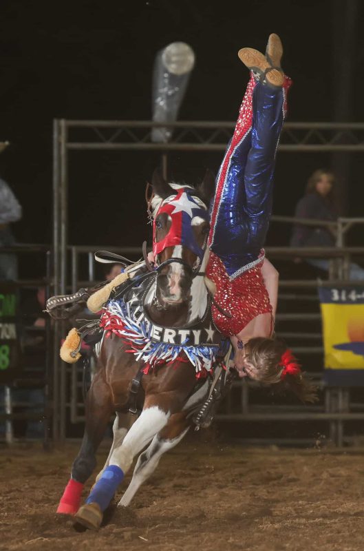 Bit by bit, she taught Blair everything from basic flatwork to Roman riding and even jumping. It wasn’t exactly smooth — Blair had horsepower and opinions. But Liberty had a background with fast barrel horses, so speed didn’t scare her, and attitude wasn’t new.