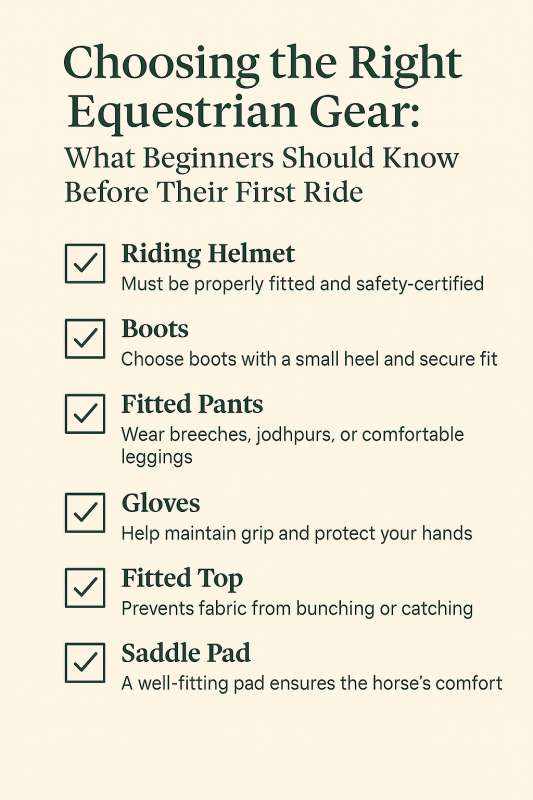 Starting horseback riding is exciting, but choosing the right gear can feel overwhelming for new riders. The good news is that you don’t need a long list of equipment to begin. With a few key pieces, you can ride safely, comfortably, and with confidence. Here’s what every beginner should know before getting in the saddle.