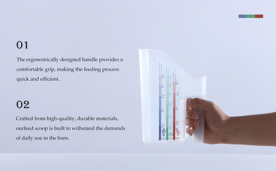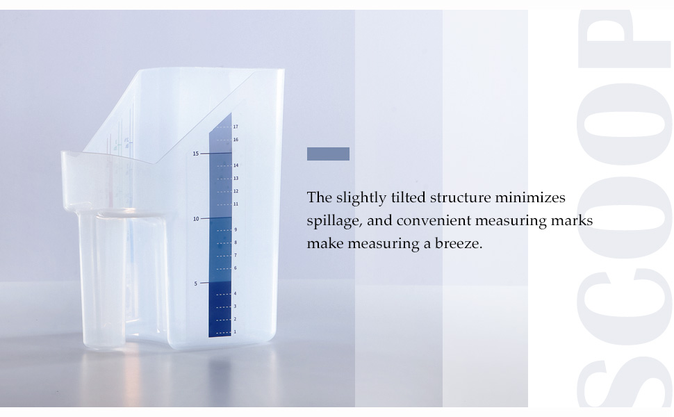 This feed scoop has transparent measurement lines, easy to read at a glance.