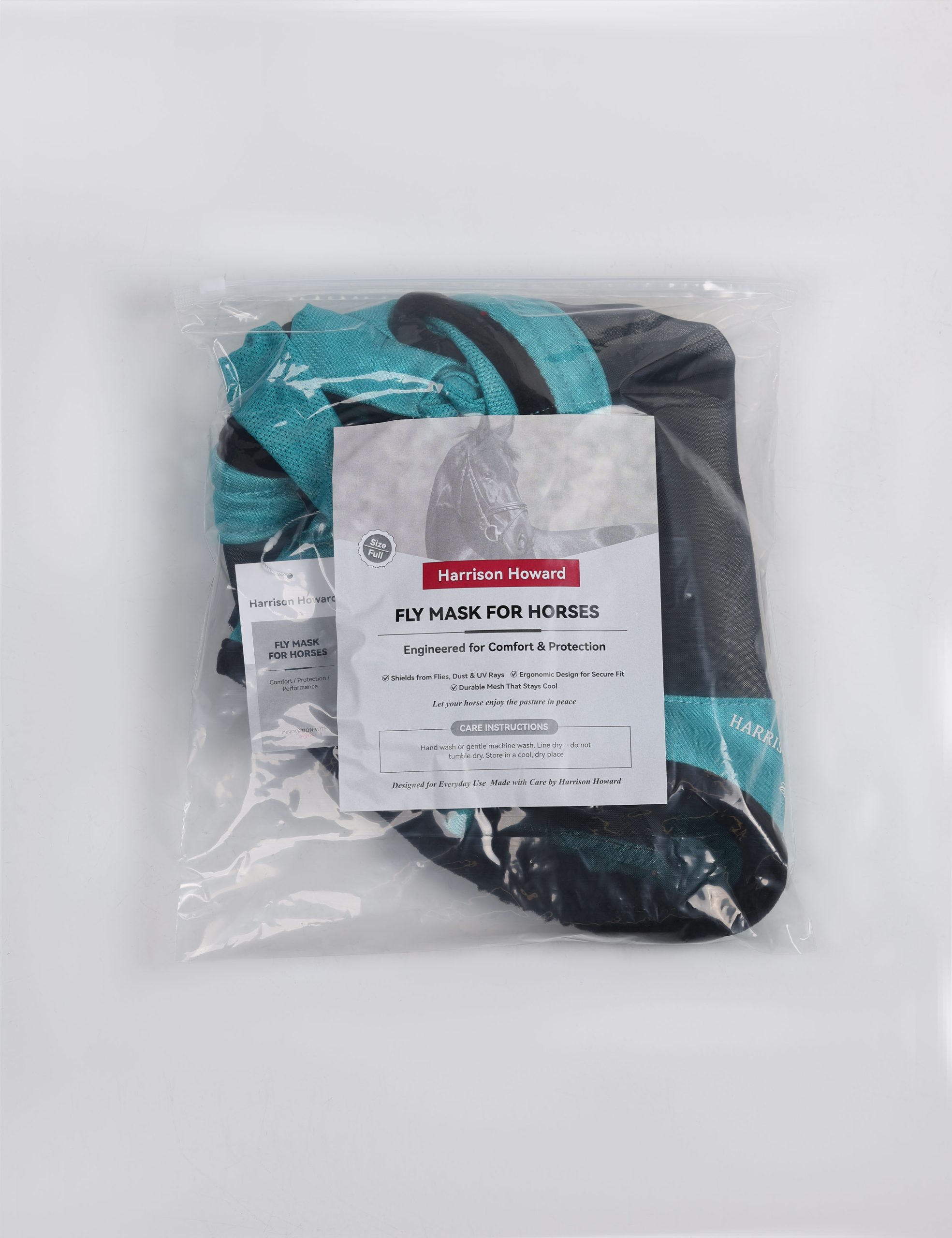 ?Keep your horse protected and comfortable with our Horse Fly Mask with UV Protection! Designed with a large eye space for clear visibility and ear covers for full coverage, this breathable mesh mask shields against flies, bugs, and harmful sun rays. The soft, durable fabric ensures a secure fit without irritation, making it perfect for turnout, riding, or pasture time. Available in blue – because safety and style go hand in hoof!