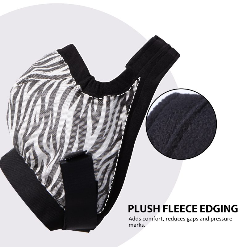 - Thick Fleece Padding: Fleece padding along the seams on the inner forehead and nose eliminates rubbing and lifts the mask away from your horse's eyes, as well as reduces gaps and minimizes pressure marks.