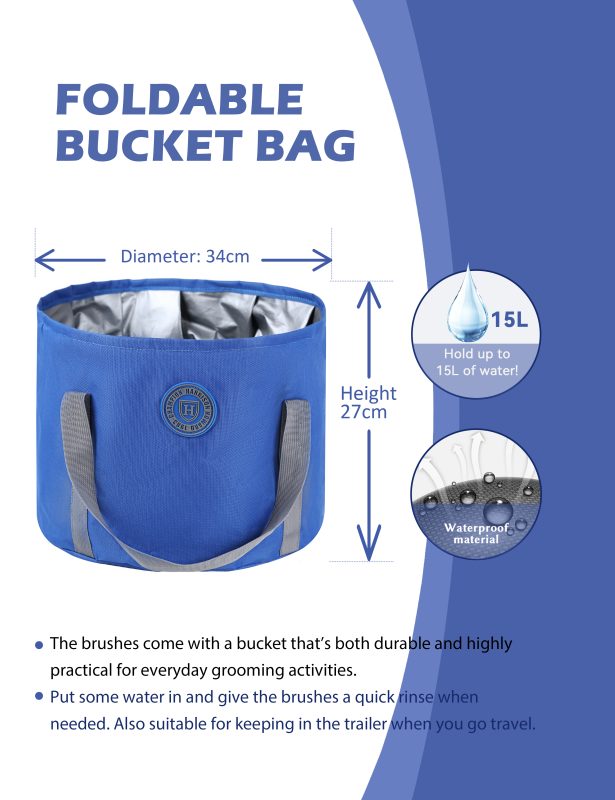 Portable Water Bucket: The horse grooming set comes with a foldable tote bag that not only neatly stores all the brushes but also doubles as a mobile water bucket. This convenient feature allows for quick cleaning of brushes or your horse, eliminating the need to carry a separate bucket for on-the-go grooming.
