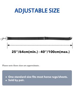 EFFORTLESS MAINTENANCE: Machine washable, dries real quick, a handy spare part to have in the tack room. Adjustable from 20″-40″. One standard size horse blanket straps fit most horse rugs/sheets. Sold by pair. Color choices: Black, Hot Pink, Fluorescent Yellow, Orange, and Champion Blue.