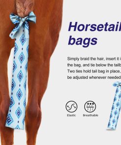 Horsetail bags are an easy and effective way to help keep your horse’s tail protected from dirt, breakage, and rubbing. If you are tired of your horse??s tail hairs breaking due to mud, sun, and manure, now you can shield your horse??s tail from the ravages of all above with our handy tail bags! Designed to suit all tastes, the Harrison Howard Essential Tail Bag now has nearly a dozen of unique patterns, choose the right one to have your horse??s tail protected with style. It helps protect the horse’s tail from dirt as well as smooth the tail hairs. The stretch fabric allows healthy airflow while keeping your horse??s tail clean, tangle-free, and lasts in all weather, a rather simple way to keep your horse??s tail in show-ready condition. Simply braid the hair, insert it into the bag, and tie it below the tailbone. Perfect for quick or overnight protection. Our bags have no touch tapes to pull on tail hairs and no fleece to absorb the hair??s natural moisture. The tail bag is easy to use as it does not require any special tools. There??s no simpler way to keep your horse??s tail in show-ready condition! We have various colors and patterns of ponytail bags for you to choose. One size fits most. Measures 4″ wide and 22″ long (tail bag length).