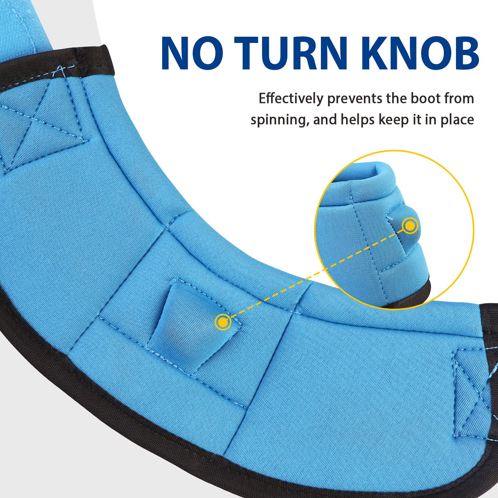 Durable build absorbs shock from daily riding. Ideal for horses prone to overreach and pulling shoes off. Rip stop outer material, durable & will not hold water. Inner shock-absorbing Neoprene provides protection. Ergonomically designed no-turn knob prevents the boot from spinning.