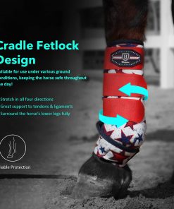 - Cradle Fetlock Design: When fully and properly wrapped in place, these boots form an all-around shield for the horse’s lower legs as they stretch in all four directions, providing the greatest support to the tendons and ligaments under various ground conditions, keeping the horse safe throughout the day.