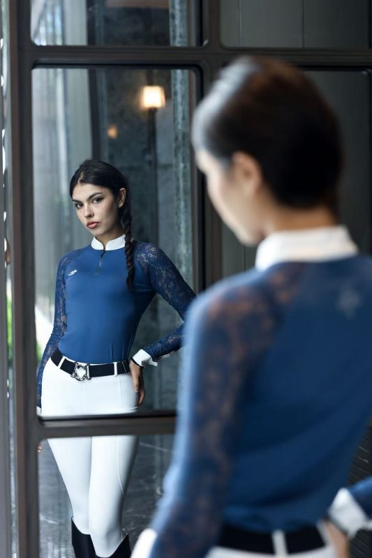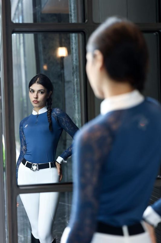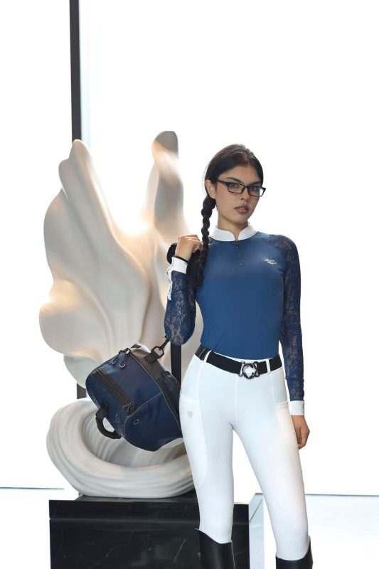 Paired with crisp white breeches, the silhouette becomes clean, modern, confidently refined.