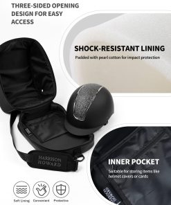 Multi-Functional Storage: The helmet bag includes a 4×9 inch side pocket for carrying essentials like your phone, gloves, and horse treats. Inside, there is an additional small zippered pocket for securely storing items such as helmet covers and cards, meeting your diverse storage needs.
