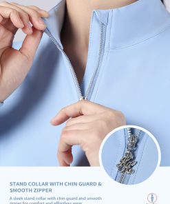 The fashionable sporty style of this top is highlighted by its unique zipper design, allowing you to transform the neckline from a V-neck to a stand collar. The curved stitching on the cuffs and the exquisite embroidery on the back collar and back add a touch of elegance and sophistication. The tailored and streamlined fit ensures that you look and feel your best, whether you’re training or enjoying a casual day out.