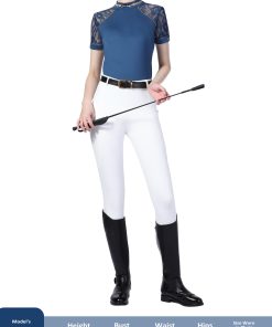 Available in a variety of simple and stylish colors, it enhances overall sophistication and elegance. The versatile material is machine washable, making it easy to maintain and clean. Elevate your equestrian competition wardrobe with our Short Sleeve Equestrian Competition Lace Show Shirt, because it offers both style and functionality for every rider.