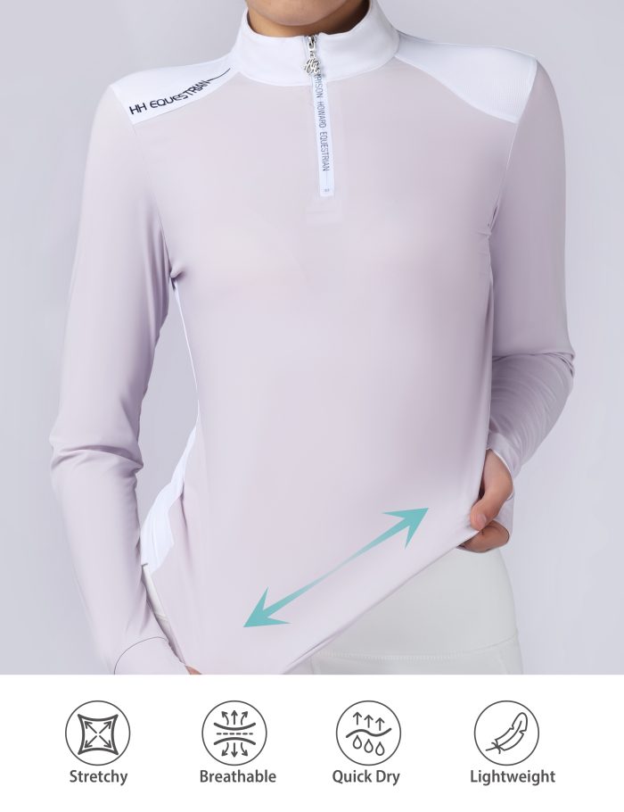 Crafted from a blend of 67% Nylon and 33% Spandex, the fabric moves with you, offering flexibility and support for a full range of motion??perfect for long rides, training, or competition. The stand collar and 1/4 zipper make it easy to slip on, while the breathable, lightweight fabric keeps you cool and comfortable. Whether in the saddle or relaxing at the stable, this versatile shirt is an essential addition to any equestrian??s wardrobe.