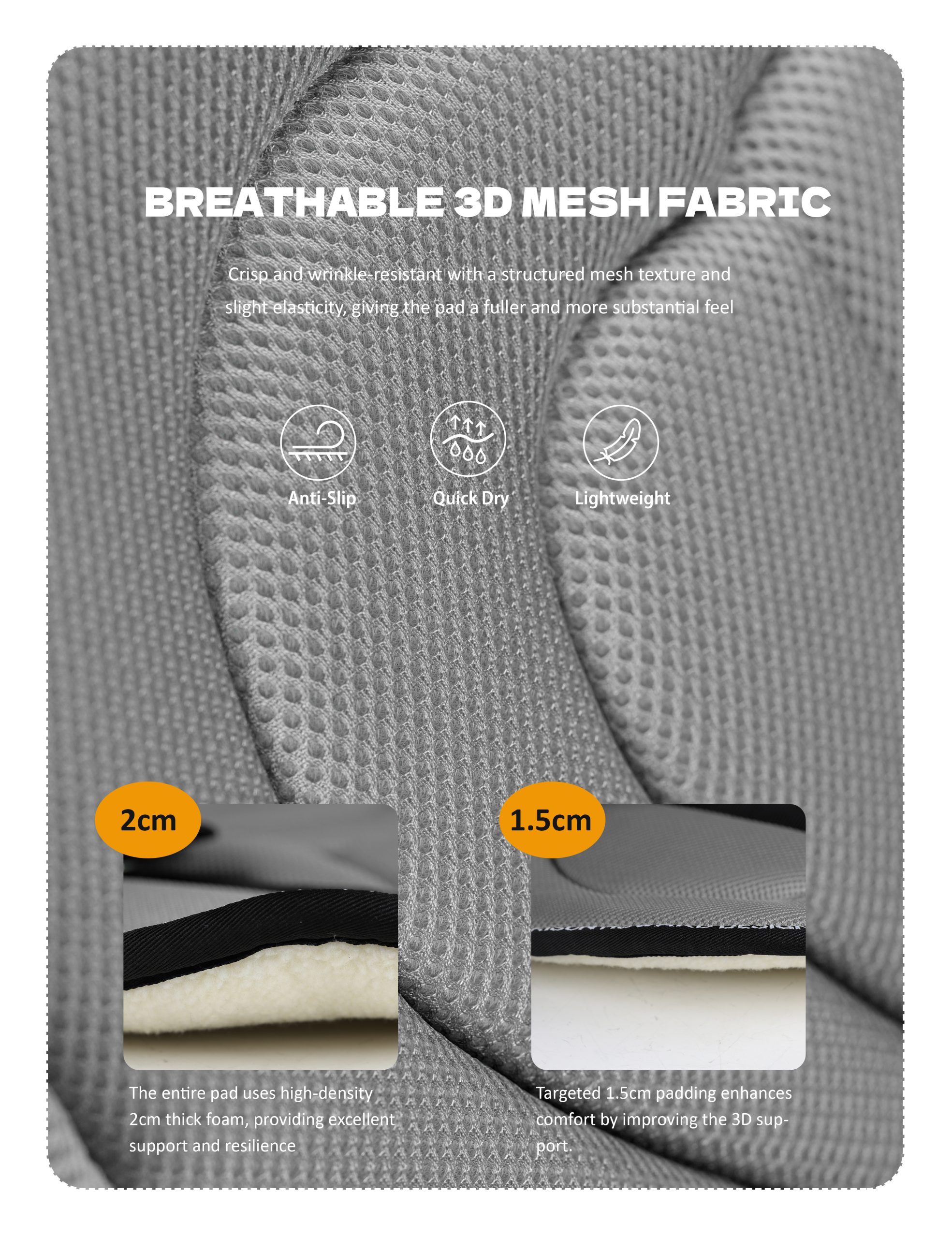 3D Air Mesh Design: The high-quality 3D air mesh fabric promotes airflow and is quick-drying, making the bareback pad lightweight and breathable, ideal for long-distance riding.