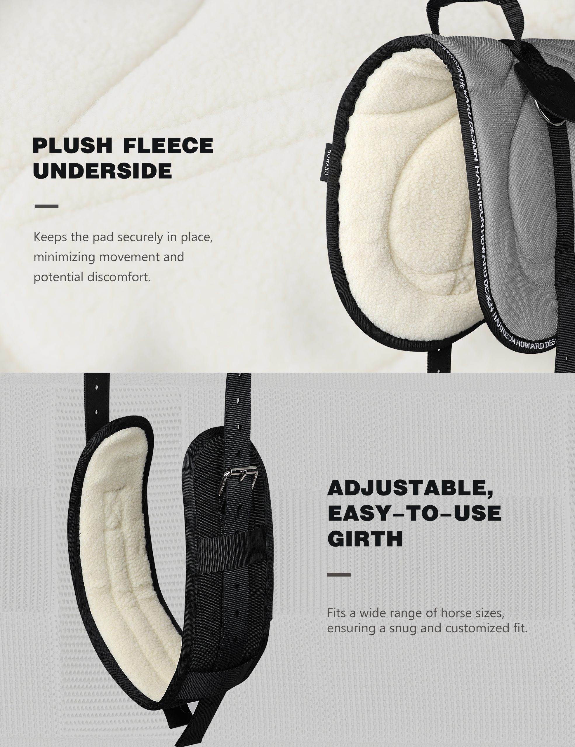 Breathable & Durable Fleece Lining: The high-quality hollow-spun fleece interior offers exceptional breathability, abrasion resistance, and long-lasting use, keeping your horse cool and comfortable on extended rides.