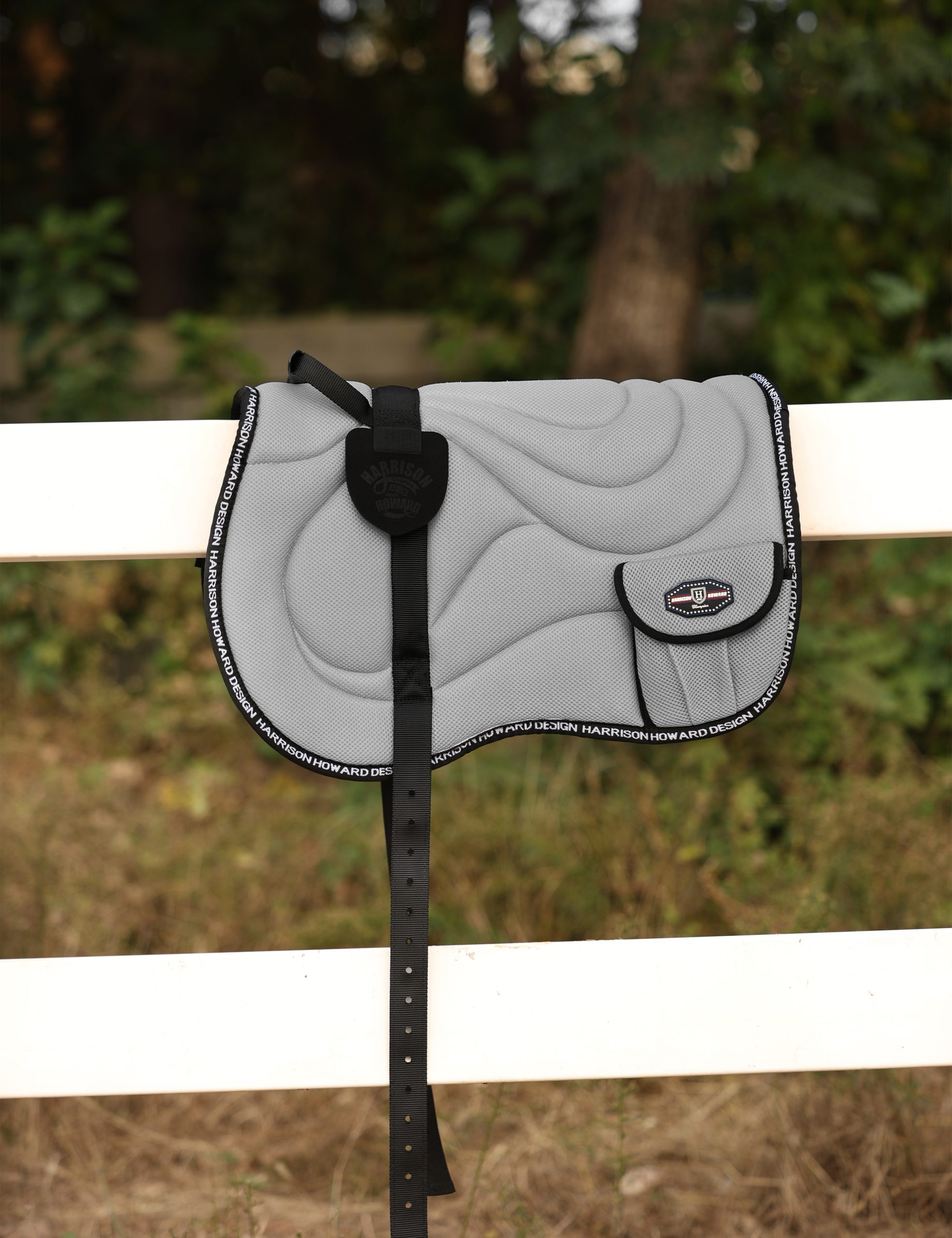 Experience the ultimate blend of connection and comfort with the Harrison Howard Breathable Mesh Bareback Pad, designed with both horse and rider in mind. We prioritize your horse’s well-being with a unique combination of 2cm of thick foam and a raised spinal relief channel that ensures even weight distribution and minimizes pressure points. The breathable, 3D air mesh construction and soft, hollow-spun fleece lining work together to keep your horse cool, dry, and comfortable, even on long rides. For you, the rider, it offers superior security with a grippy microfiber leather surface, a comfortable handle, and a convenient storage pocket for your essentials. The wide, 13cm girth reduces belly pressure and features a sturdy buckle for a safe, secure fit. Durable, lightweight, and thoughtfully engineered, this horse bareback pad is the perfect choice for sensitive-backed horses and riders seeking a closer, more comfortable ride for everyday training or long-distance adventures.