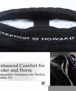 Introducing the Harrison Howard??s Horse Riding Correction Saddle Pad with Four Pockets and Differentiated Foam Inserts, designed to redefine comfort and performance for both the rider and horse. This English saddle pad is engineered to enhance comfort during extended rides, alleviating discomfort and promoting an enjoyable riding experience. Featuring an advanced four-pocket system, it offers unparalleled customization. Strategically placed pockets allow for precise adjustments of the pad’s thickness and support level, tailored to both the horse’s anatomy and the rider’s preferences. Within each pocket, differentiated high-quality foam inserts of varying densities work to absorb shocks and distribute pressure evenly. This design ensures maximum protection against impact, significantly enhancing the riding experience. By improving saddle fit and reducing uneven pressure distribution, our pad actively helps in preventing common riding injuries, making for a safer riding experience. Crafted from durable high-quality suede material, our horse saddle pad withstands the rigors of daily use and is incredibly easy to clean and maintain. Machine washable for your convenience, it promises to remain an indispensable part of your riding equipment for years to come. Elevate your riding experience with our saddle pad, where comfort meets performance.