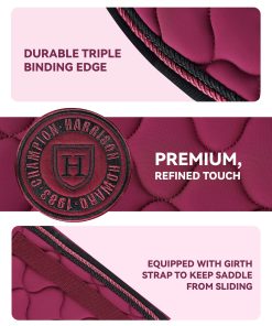 Enhance your horse??s comfort and your ride with Harrison Howard??s high-performance general-purpose saddle pad. Crafted with a vibrant, durable nylon-spandex outer fabric, this horse saddle pad combines eye-catching style with exceptional wear resistance – perfect for both daily training and show use. The fihing net quilted design not only adds a touch of elegance but also keeps the internal structure stable and long-lasting.