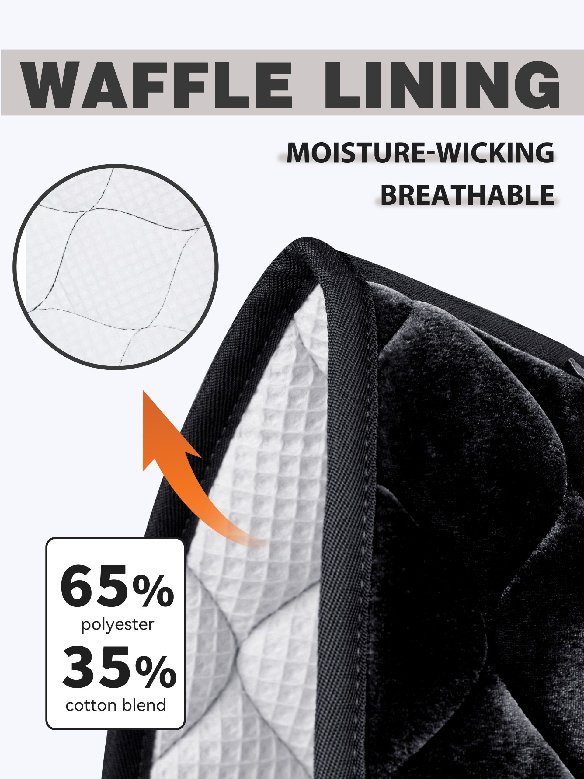 - Premium Material: The English half pad is crafted from high-quality velvet and breathable quilted cotton, offering a soft touch, luxurious durability, and excellent moisture-wicking properties. The horse saddle pad effectively reduces friction between the saddle and the horse’s back, preventing chafing and discomfort.