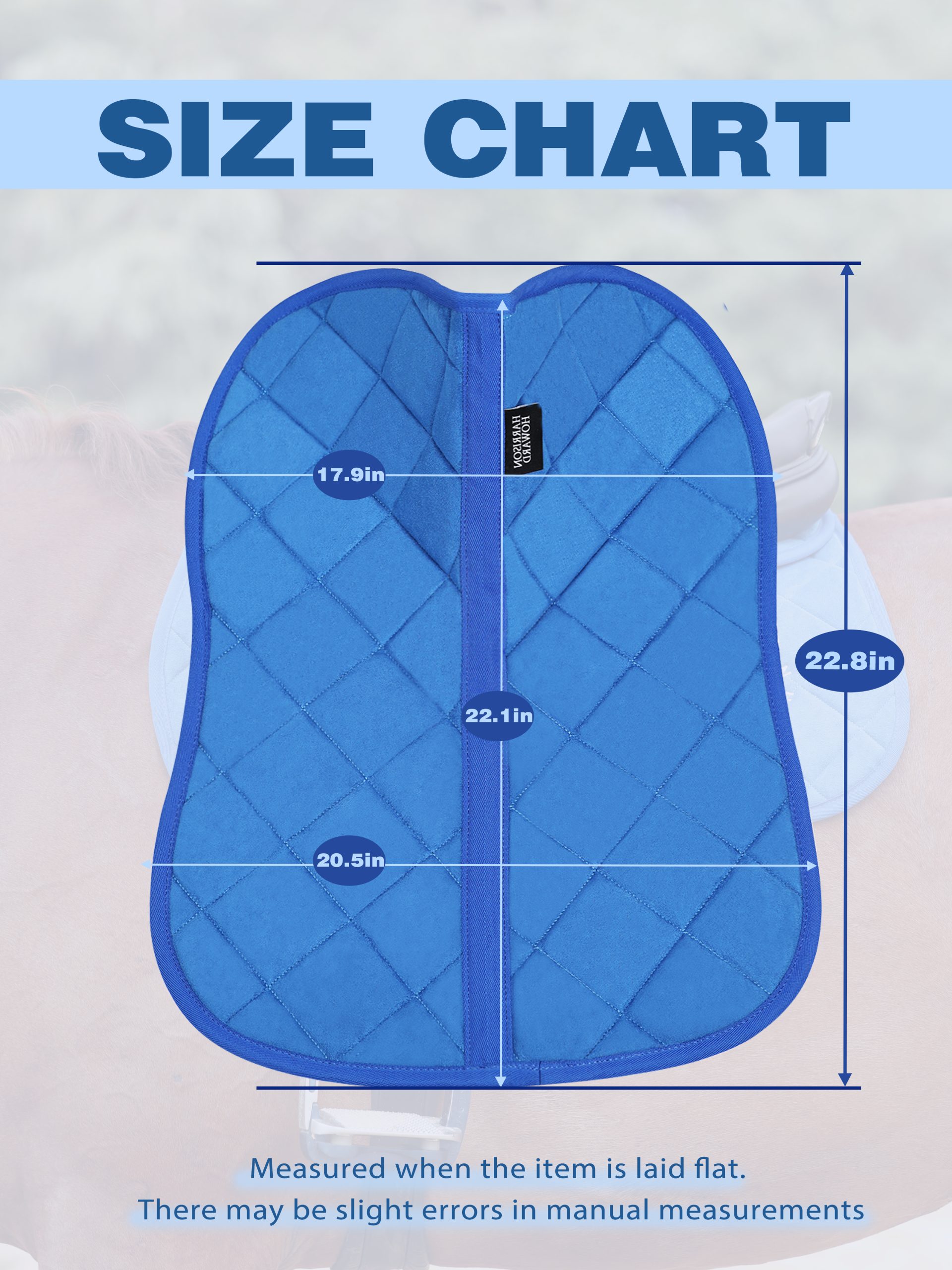 Advanced Fabrics: Surface is made with high-quality, soft and anti-slip suede and cotton blend inner, this saddle pad is breathable, moisture-wicking, and long-lasting, ensuring that ?your horse stay cool and comfortable under all conditions.