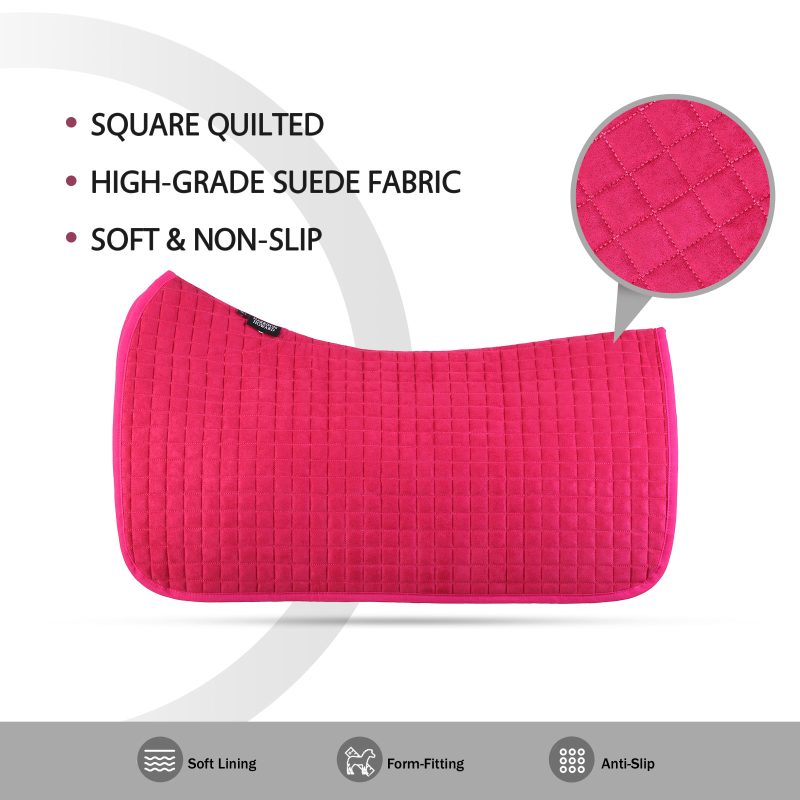 Advanced Fabrics: Surface is made with high-quality, soft and anti-slip suede and cotton blend inner, this saddle pad is breathable, moisture-wicking, and long-lasting, ensuring that ?your horse stay cool and comfortable under all conditions.