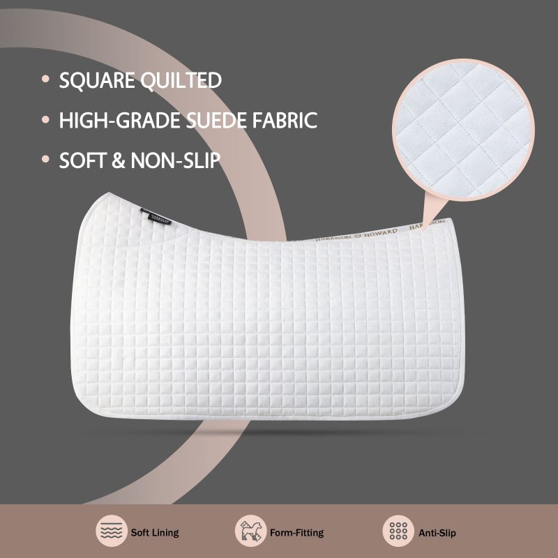 Advanced Fabrics: Surface is made with high-quality, soft and anti-slip suede and cotton blend inner, this saddle pad is breathable, moisture-wicking, and long-lasting, ensuring that ?your horse stay cool and comfortable under all conditions.