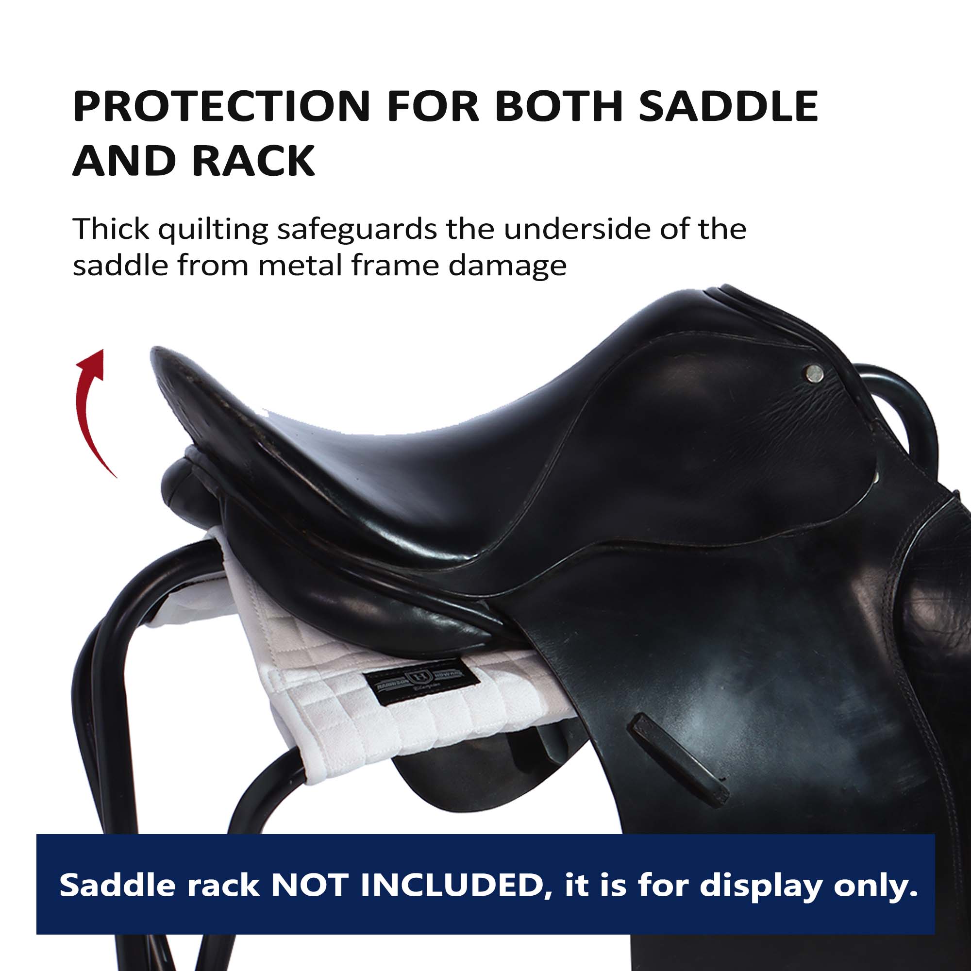 - Secure & Protective: Accommodates both English and Western saddles and ensures they stay securely in place, preventing any slips or mishaps. Supportive fabric adds protection to the underside of the saddle and effectively prevents saddle rack bar indentations.
