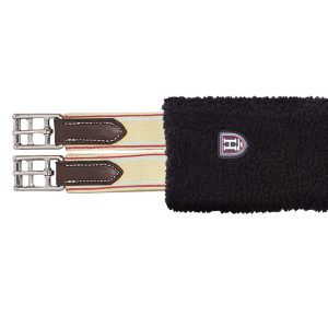 Upgrade your girth to a new level of comfort with the Harrison Howard Sleeve-Style Girth Cover, get an additional layer of cushioning as it limits friction and irritation at the girth passage. The 500g thick and cushy polar fleece provides your equine partner with extra softness, comfort, and protection from chafing, sores, irritation, and uncomfortable pressure, etc. For those who do not like tight girth exerting force directly on the skin, this cushions the girth to allow more comfort to his stomach. Gear up with this sleeve cover and your horse is fixed with additional wearing comfort at the girth area! This sleeve cover adopts no hook-and-loop fastener and its convenient slide-on design makes fixing rather effortless – built for quick and safe application over the girth itself. It is specifically designed to stand up to the harsh rigors of everyday training and distance trail riding, perfect for adding to your girth at home to prevent rubs. Easy cleaning can be made: machine washable on a delicate cycle with a lower speed spin. Colour options: Middle Blue, Black, and Army Green. Size reference: 5”W*30”L. This dense sheepskin sleeve-style cover will accommodate a 3 3/4″ – 4 3/4″ wide girth.