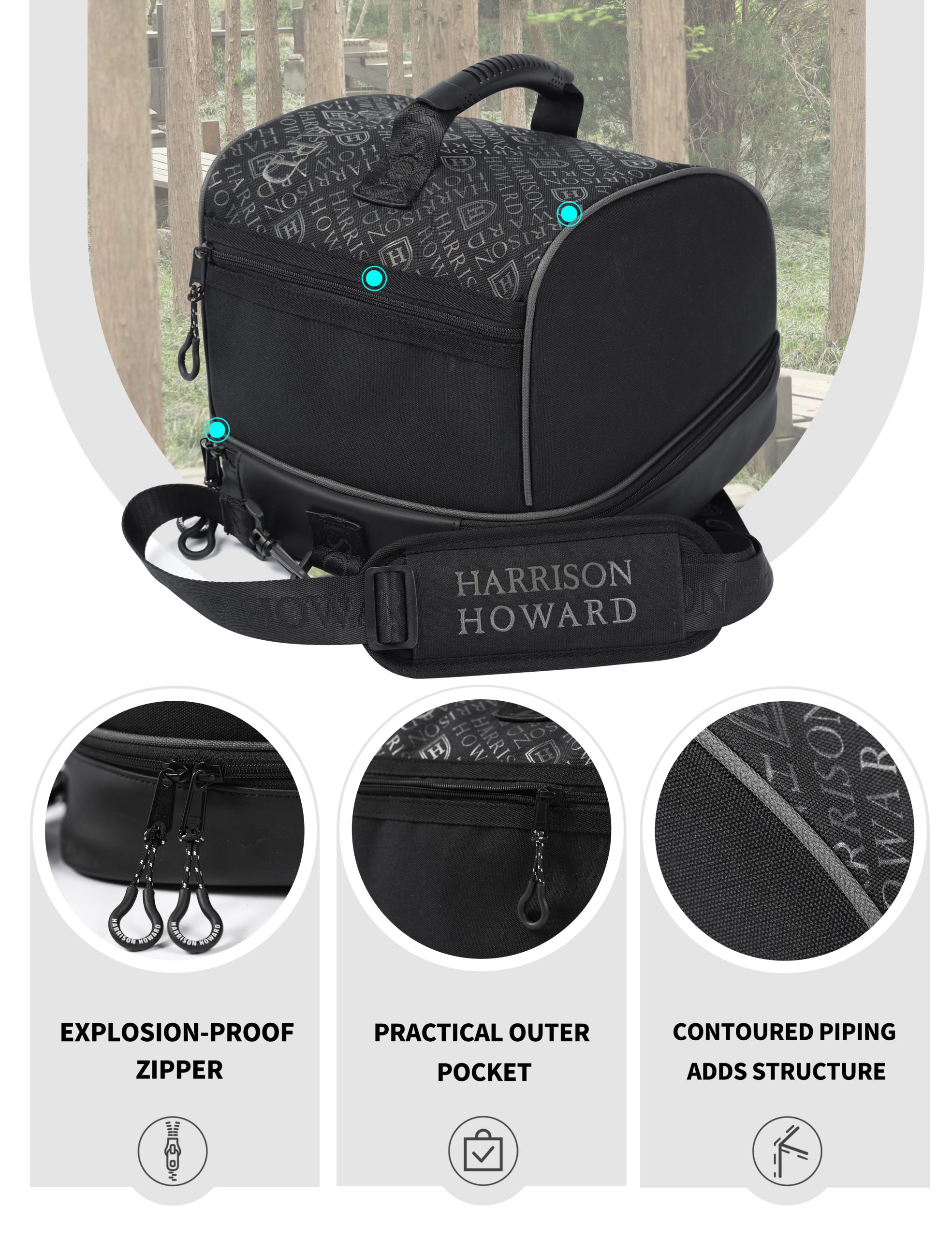 Protect your gear in style with Harrison Howard’s Premium Helmet Bag, crafted from high-quality 600D high-density fabric with a waterproof coating for excellent water resistance. Designed for riders and adventurers, this bag features a structured, wrinkle-resistant build with a modern, sophisticated look.