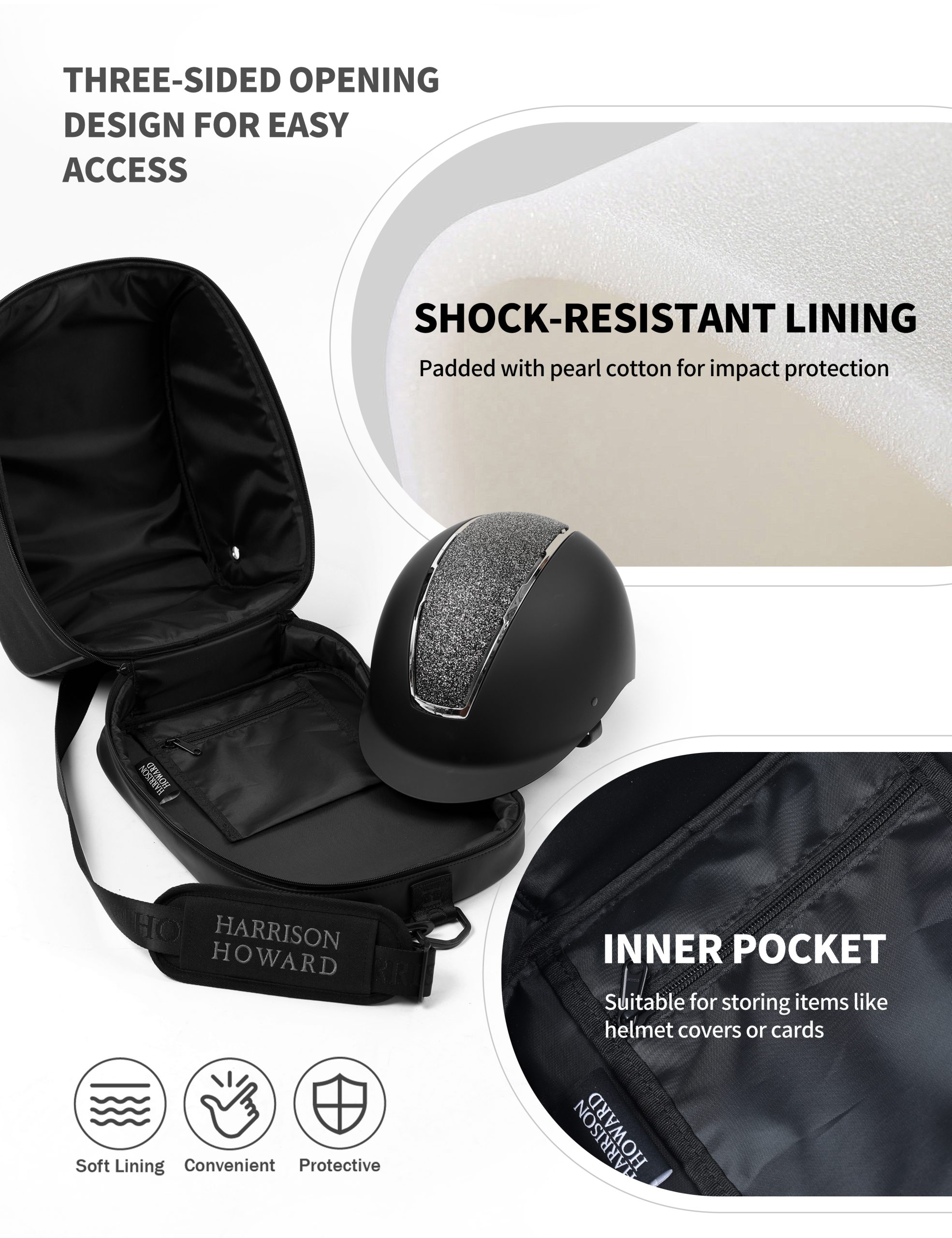 Harrison Howard Premium Helmet Storage Case Sturdy 600D Fabric Equestrian Helmet Bag Travel Gear for Horse Riders