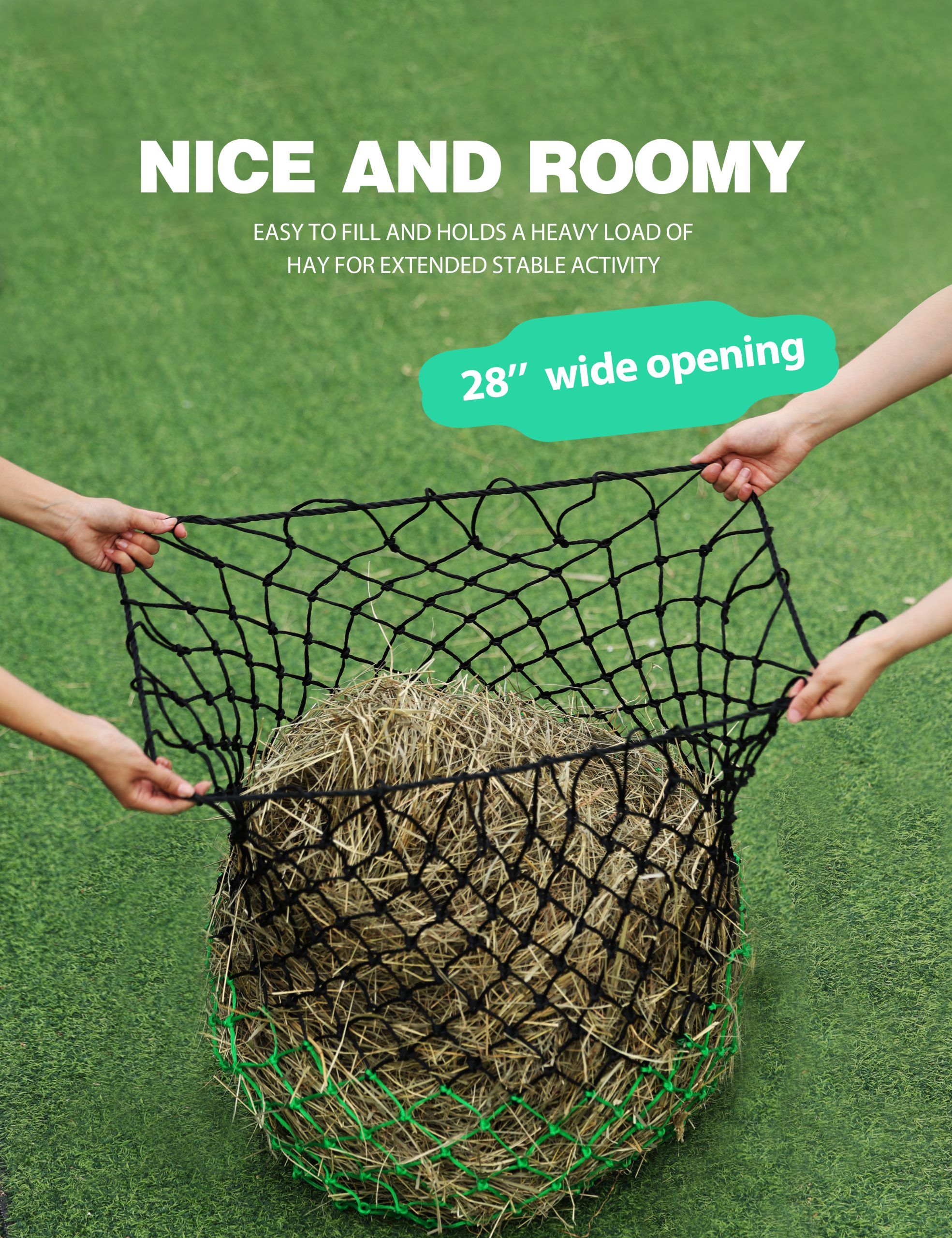 Spacious Design: Large enough to hold a substantial amount of hay, this net provides extended feeding time, perfect for keeping horses occupied in the stable or during events.