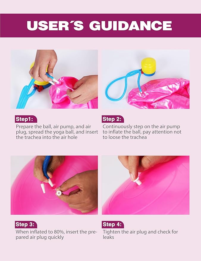 - EASY-TO-INFLATE (PUMP INCLUDED): Equipped with an easy-to-inflate foot pump, save time and energy with the pump included in the package. Inflate the ball to approximately 80% during use so that the ball is more flexible and safer.