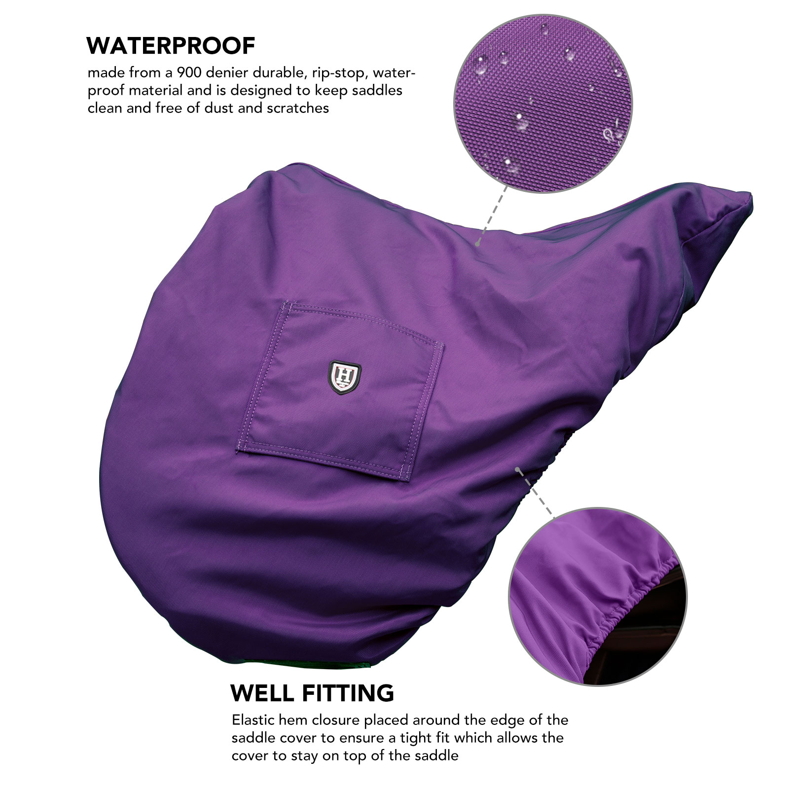 DURABLE MATERIAL: made from a 900 denier durable, rip-stop, waterproof material, this english saddle cover provides reliable protection, keeping your saddle clean and safeguarded.