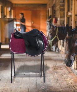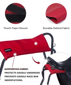 - Secure & Protective: Accommodates both English and Western saddles and ensures they stay securely in place, preventing any slips or mishaps. Supportive fabric adds protection to the underside of the saddle and effectively prevents saddle rack bar indentations.
