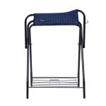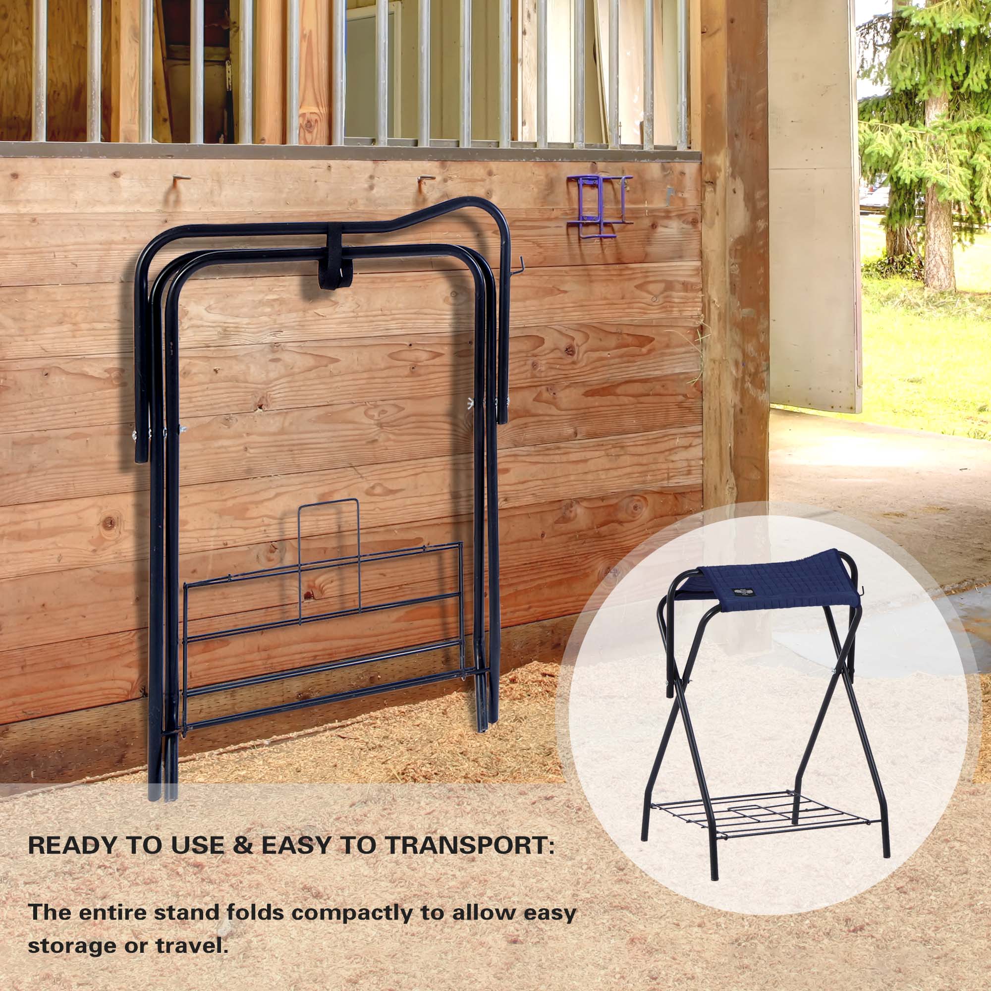 Harrison Howard Saddle Stand Freestanding Full-Size Portable Floor Horse Saddle Rack with Supportive Fabric to Prevent Possible Slippage Secure Saddle Navy Blue