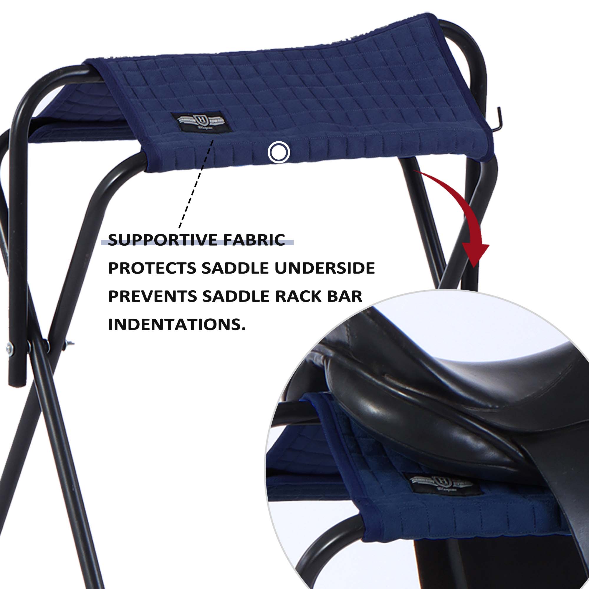 Home Stable & Yards Saddle Rack Harrison Howard Saddle Stand Freestanding Full-Size Portable Floor Horse Saddle Rack with Supportive Fabric to Prevent Possible Slippage Secure Saddle Navy Blue