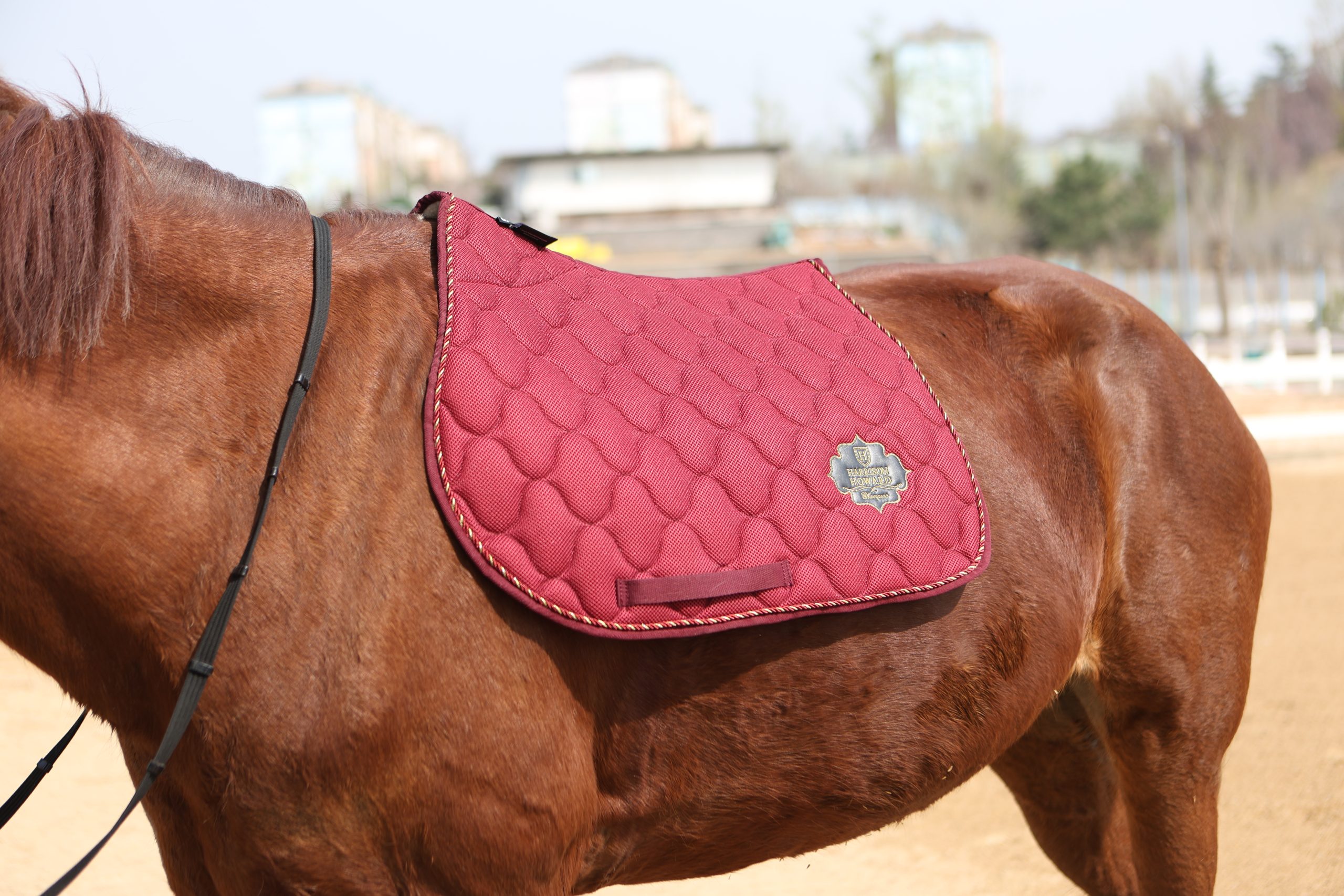 The saddle pad plays a key role in reducing friction and distributing pressure evenly across the back. If a pad is too small, too thick, or the wrong shape, it can create hot spots, slipping, or uneven pressure. This is why well-designed pads—like those from Harrison Howard, built with supportive cushioning and anatomical shaping—are made to follow the horse’s body and keep the saddle stable without restricting movement.